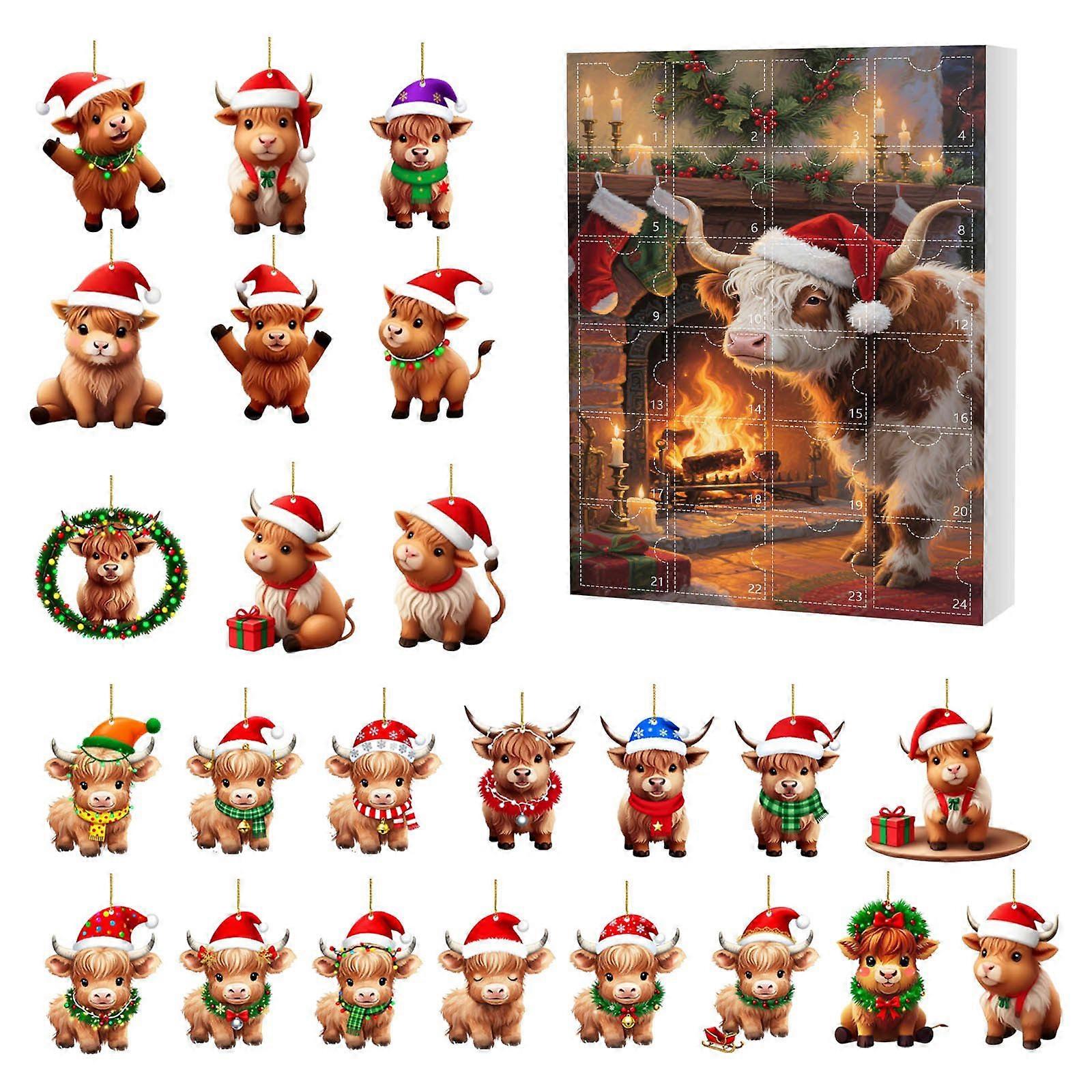 Christmas Highland Cow Advent Calendar Christmas Decor Countdown Calendar,