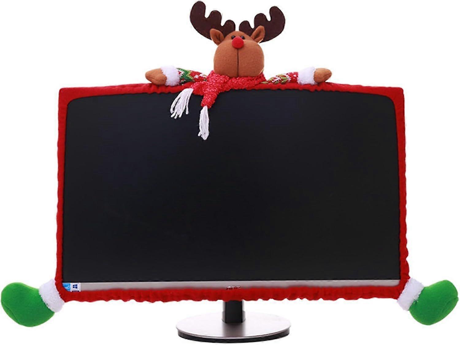 Christmas Computer Monitor Cover Elastic Xmas Decorations Reindeer Computer Monitor Border Cover Elastic Laptop Computer Cover for New Year Gift Ideas