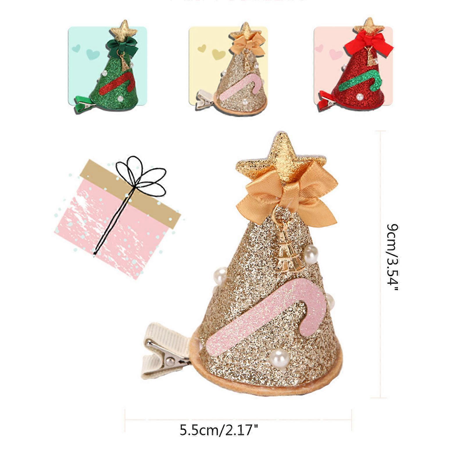 Christmas Hat Hair Clip Xmas Tree Barrette Glitter Hairpin Hair Accessories for Toddlers Girls Baby Kids Red