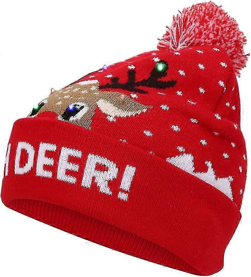 2025 Christmas Hat, Xmas Hat Holiday for Adults Children, LED Christmas Knitted Hat Light Up Beanie Cap Unisex Novelty LED Winter Snow Hat for New Yea