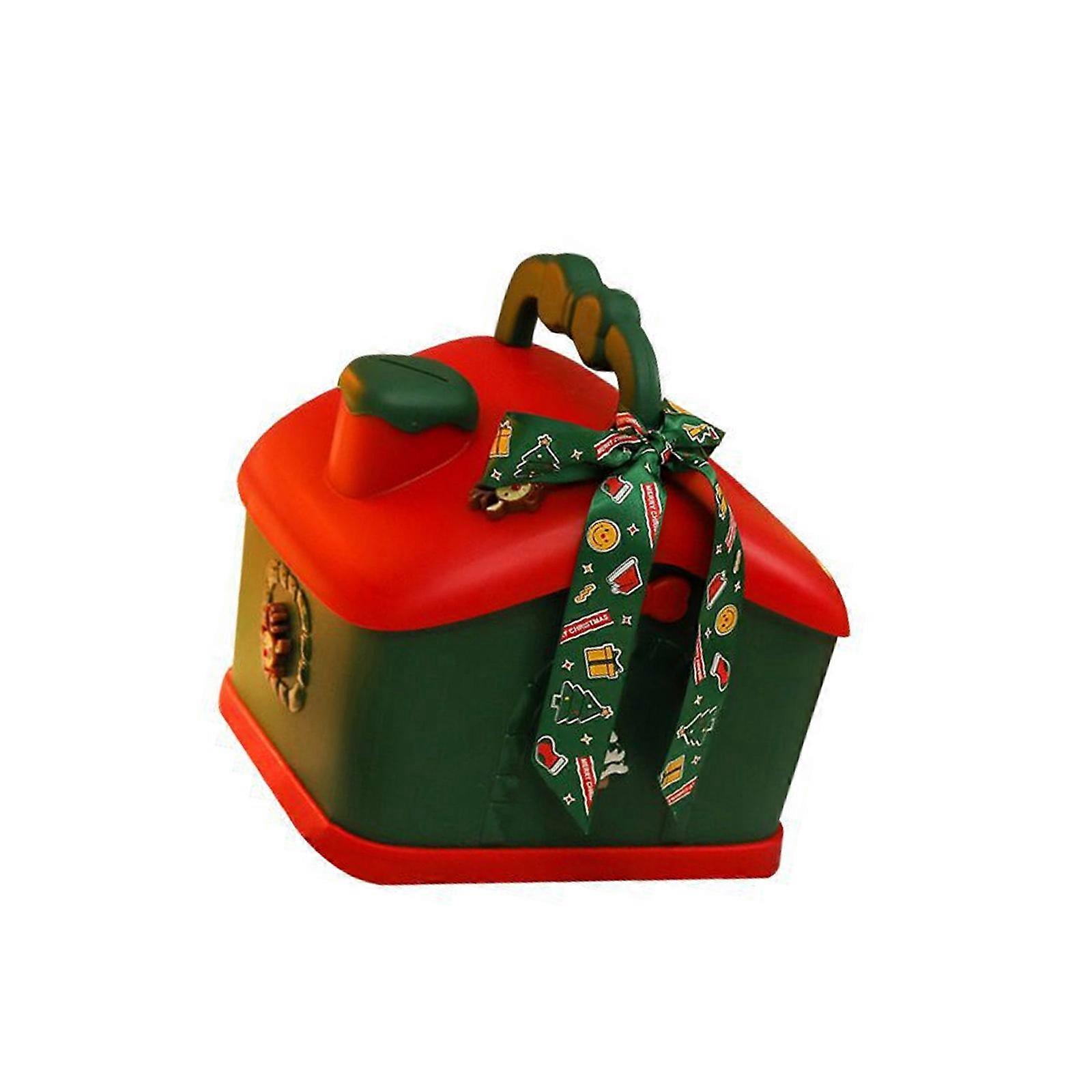 Christmas Gift Box Cabin Shape Design Piggy Bank for Toddler Life Skill Learning Holiday Surprise and Classroom Rewards Multicolor