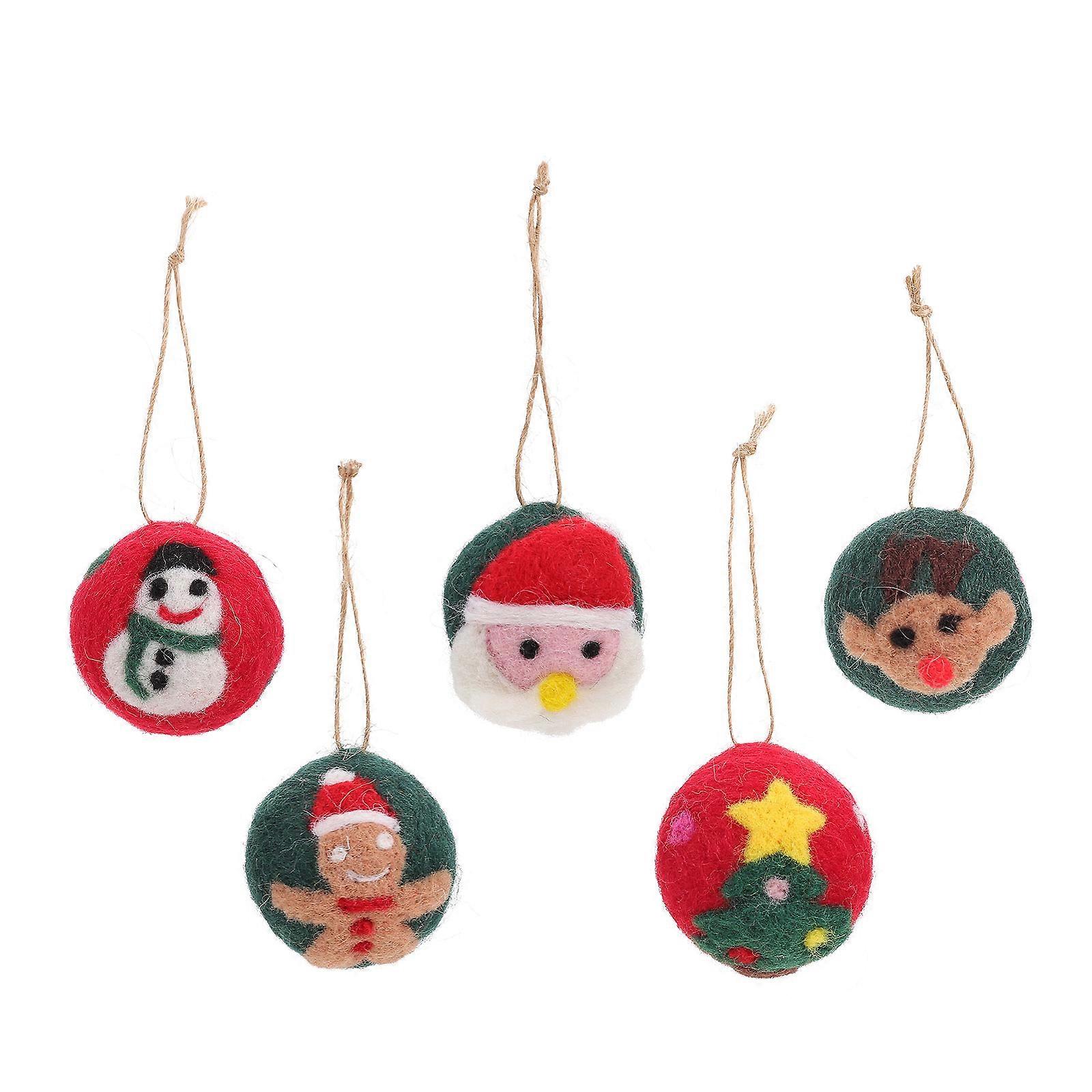 Christmas Pendant Wool Ball Hanging Decoration for Xmas 5Pcs Set