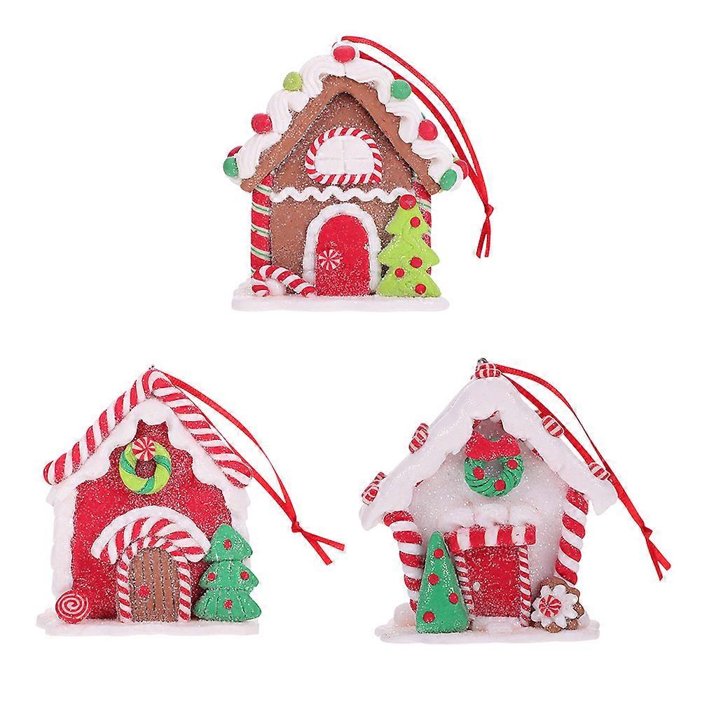 Christmas Resin Mini House Hanging Ornament 9Pcs for Holiday Decoration