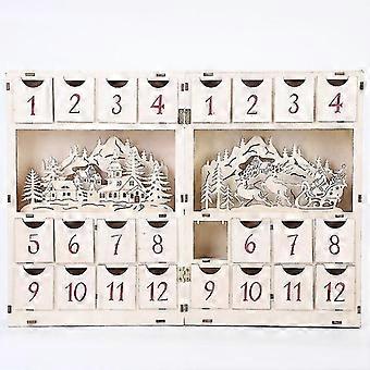 Christmas Wooden Advent Calendar Carved Christmas Tree Storage Box
