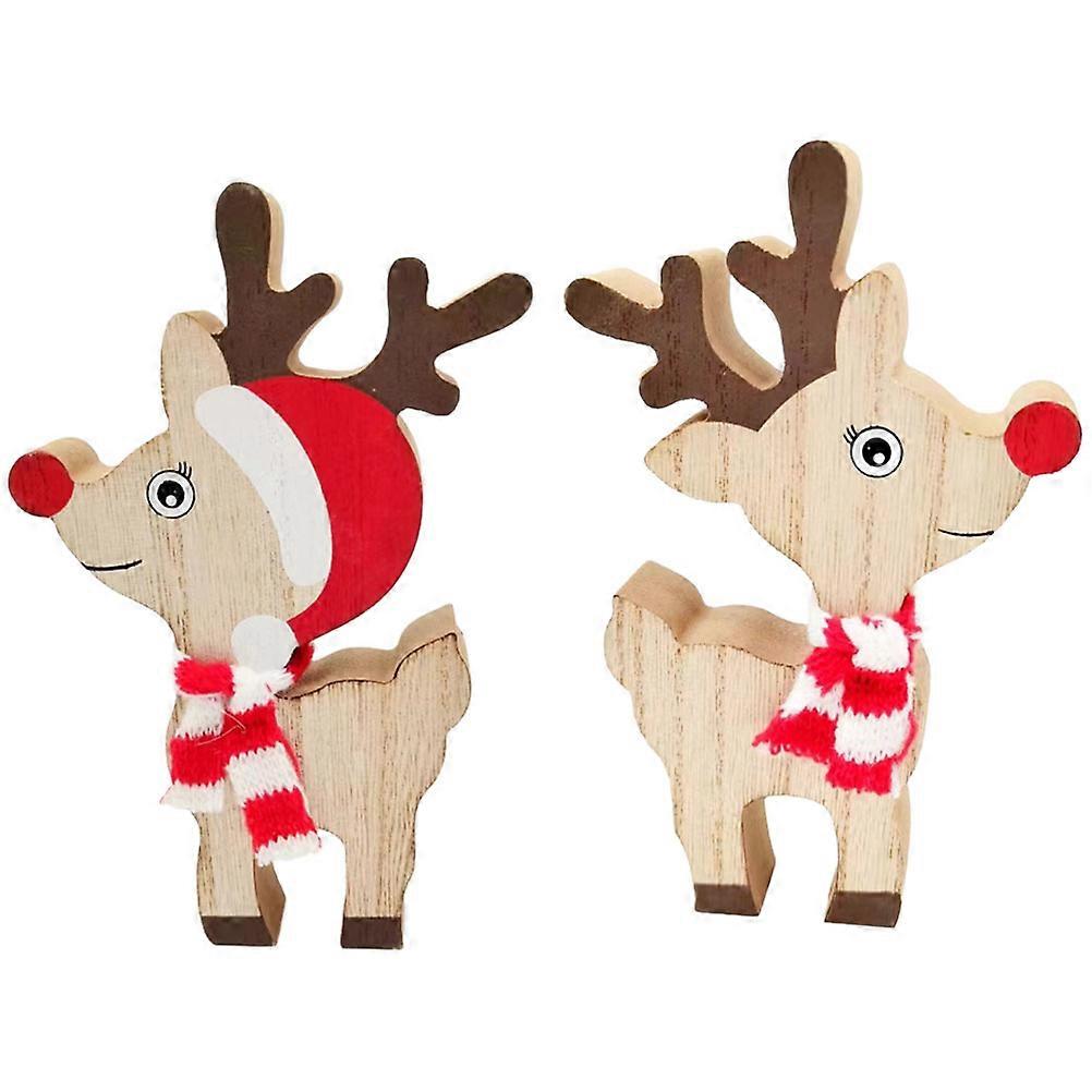Christmas Wood Deer Ornament for Decoration 2Pcs Holiday Table Ornaments