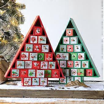 Christmas Wooden Advent Calendar House with Storage Drawers LED Lighted Countdown Number Ornament Holiday Home Desktop Decoration Gift