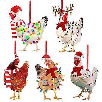 Christmas Chicken Shawl Christmas Decoration Wooden Necklace 5 Pieces for Christmas Tree