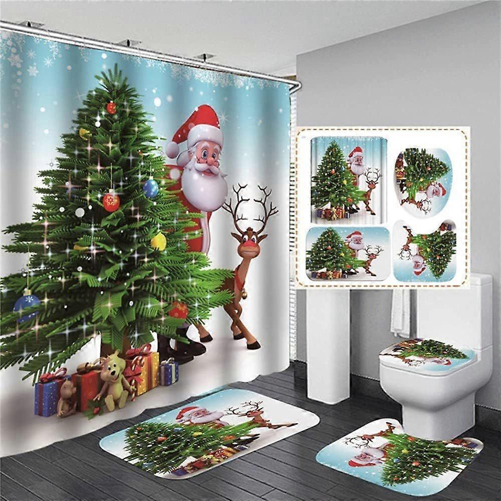 Christmas shower curtain set (gj6, 180x180-380 grams + three-piece toilet cover + u-shaped cushion + floor mat)