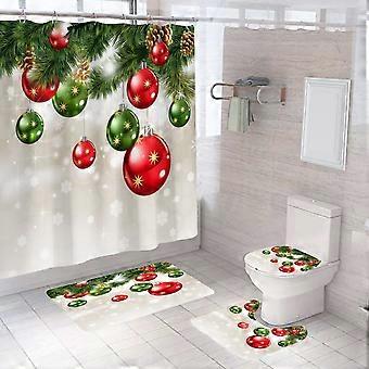Christmas Bathroom Curtains Shower Set, 4Pcs Christmas Bathroom Sets with Shower Curtain and Rugs