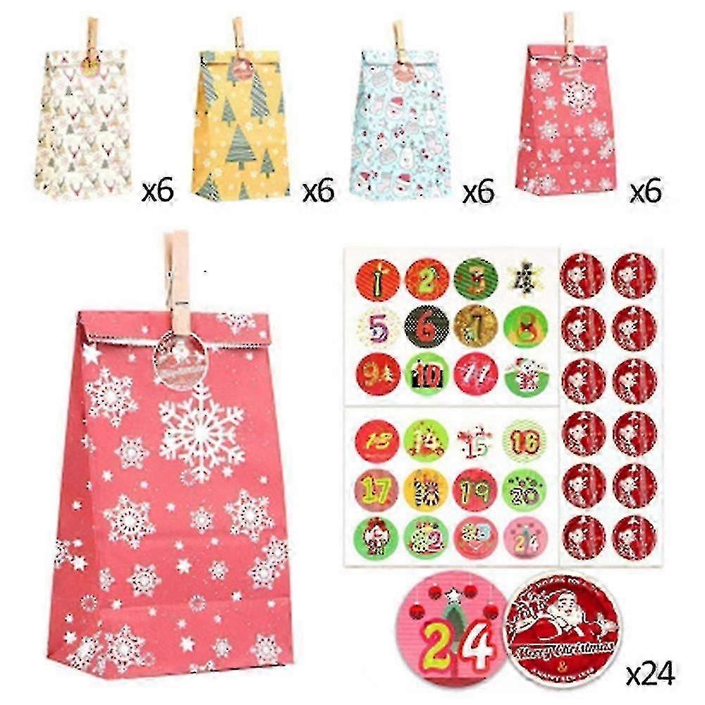 Christmas 24 Piece Set Kraft Paper Bags Colorful Gift Bags Christmas Advent Calendar Wrapping Paper Cs