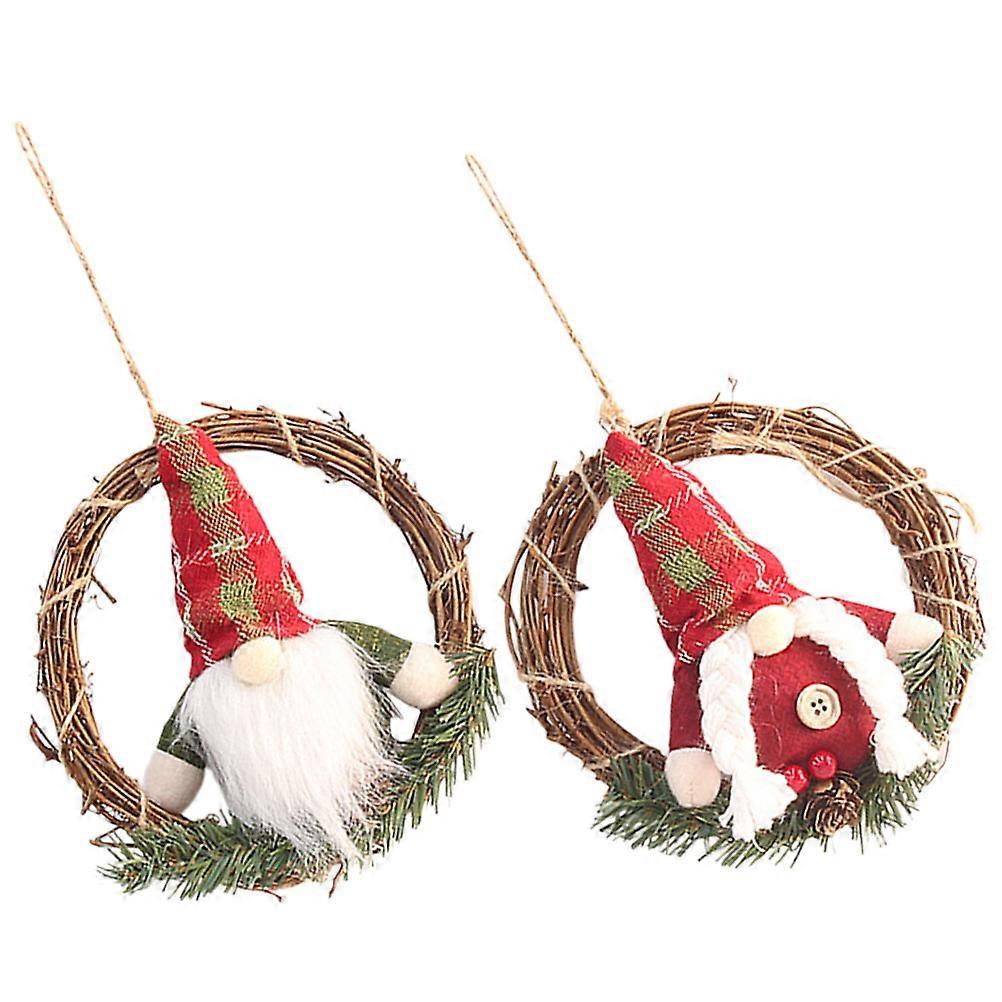 Christmas Gnome Wreath Decorative Hanging Rattan Wreath for Front Door 2Pcs