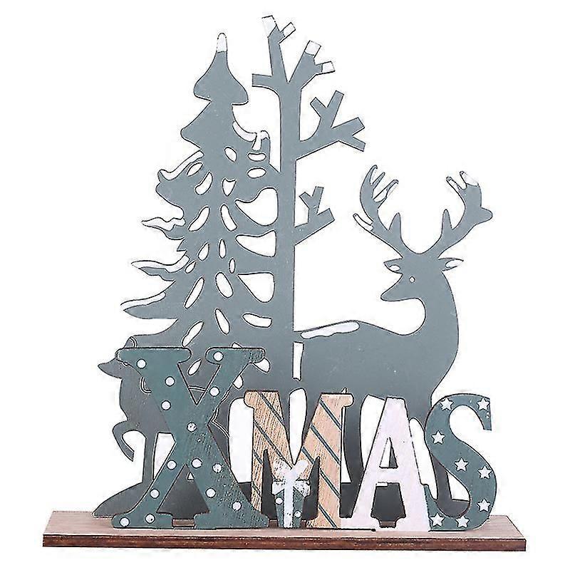 Christmas Ornament Wooden Elk & Tree Silhouette Winter Festival Scene Diy Home Decor For Desktop @BUGU