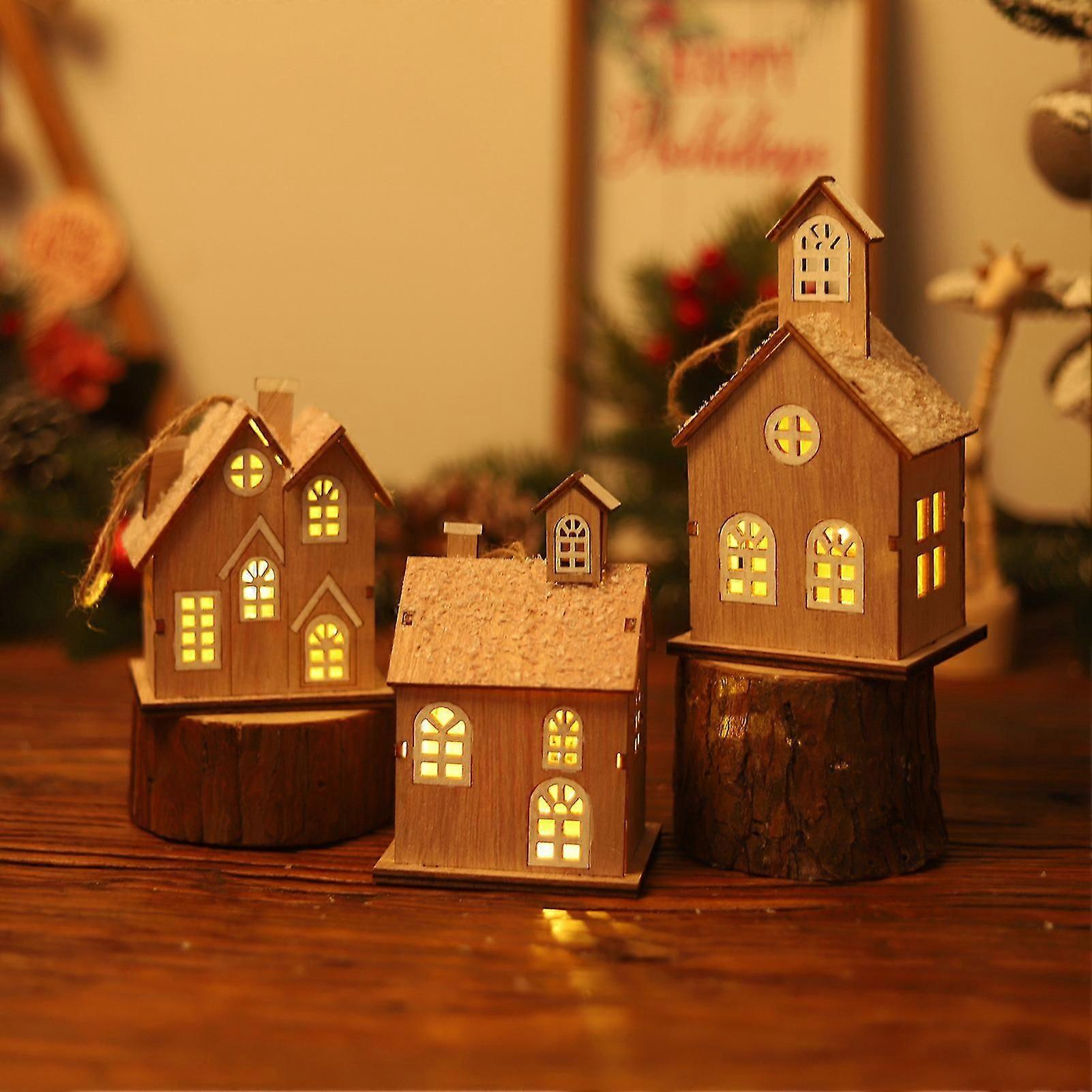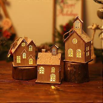 Christmas House Ornament with Window Wood Craft Small Desktop Hanging LED House Decoration Pendant