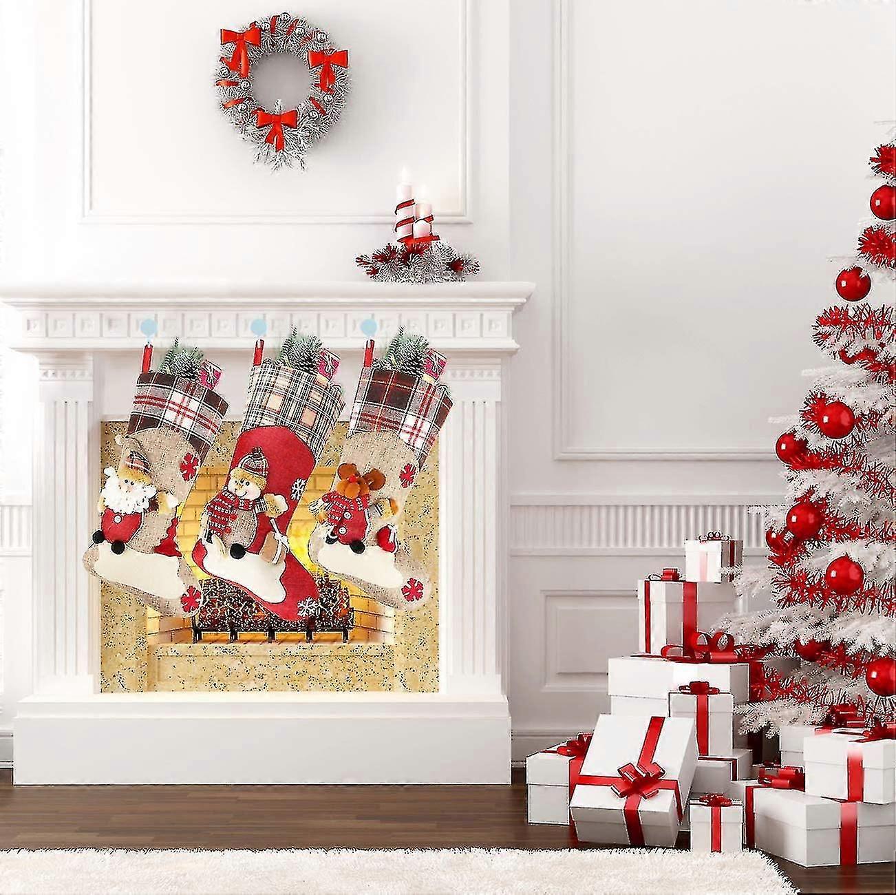 Christmas Stocking Set Of 3 18" Large Xmas Sock Sack Gift Bag For Tree Decoration @BUGU