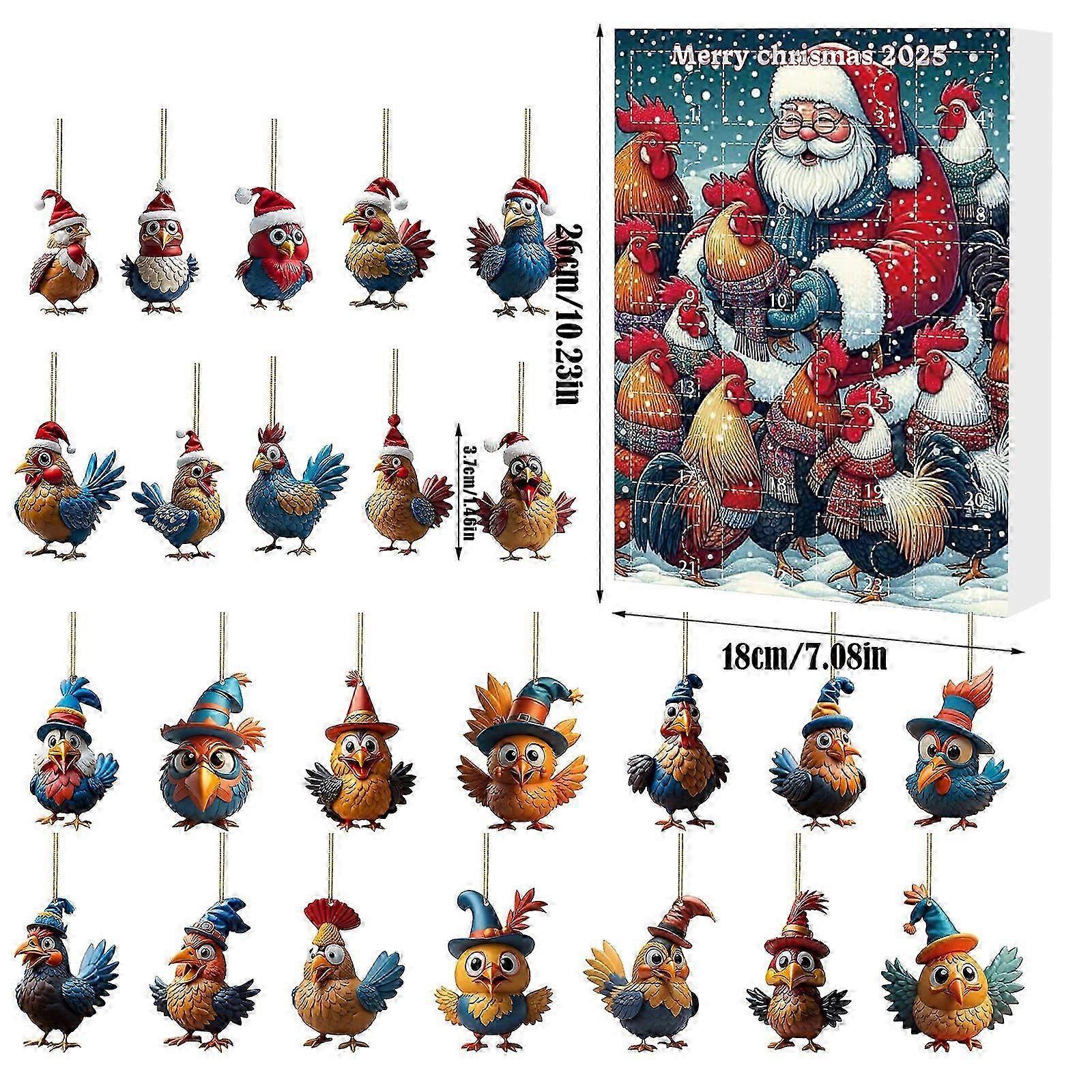 Christmas Blind Box Countdown 24 Days Calendar Blind Box Acrylic Rooster Pendant Christmas Tree Ornament