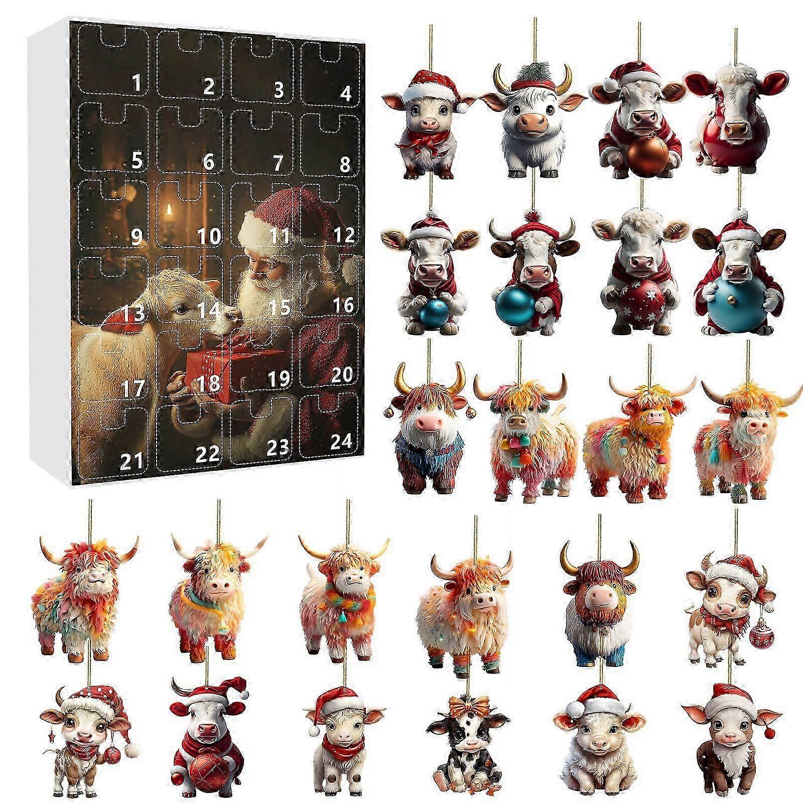Christmas blind box Christmas countdown 24 days calendar acrylic cartoon Highland cattle Christmas tree pendant