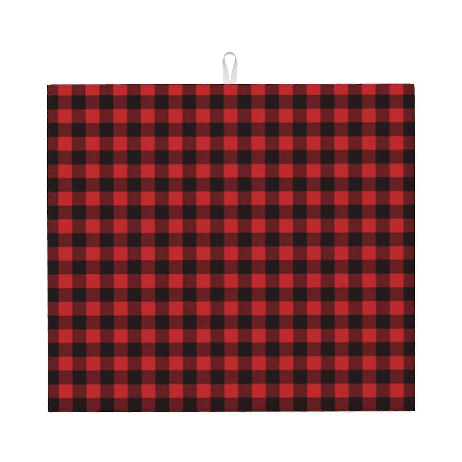 Christmas Plaid Dish Drying Mat For Kitchen Counter, Microfiber Dish Mat, Fast Absorbent Draining Pad