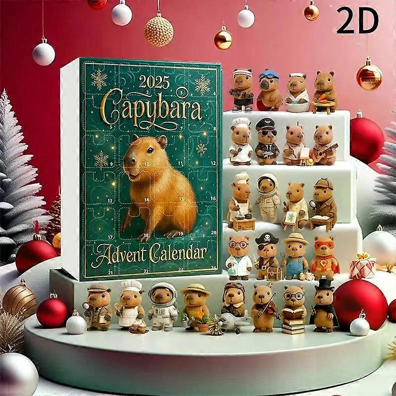 Christmas 2D Capybara Bulldog Pendant Blind Box 24 Day Countdown Advent Calendar Gift Tree Door Bag Ornament For Children Adults
