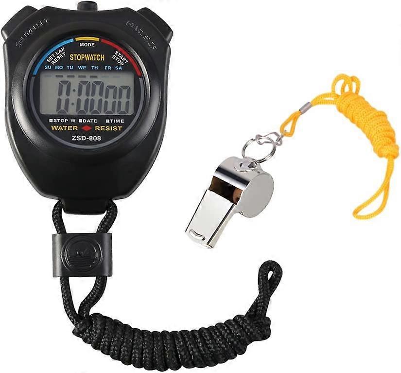 Stopwatch, Sports Timer /Digital LCD Timer with Stainless Steel Whistle for Free, Applied to Running, Football, Basketball, Swimming and Other Sports
