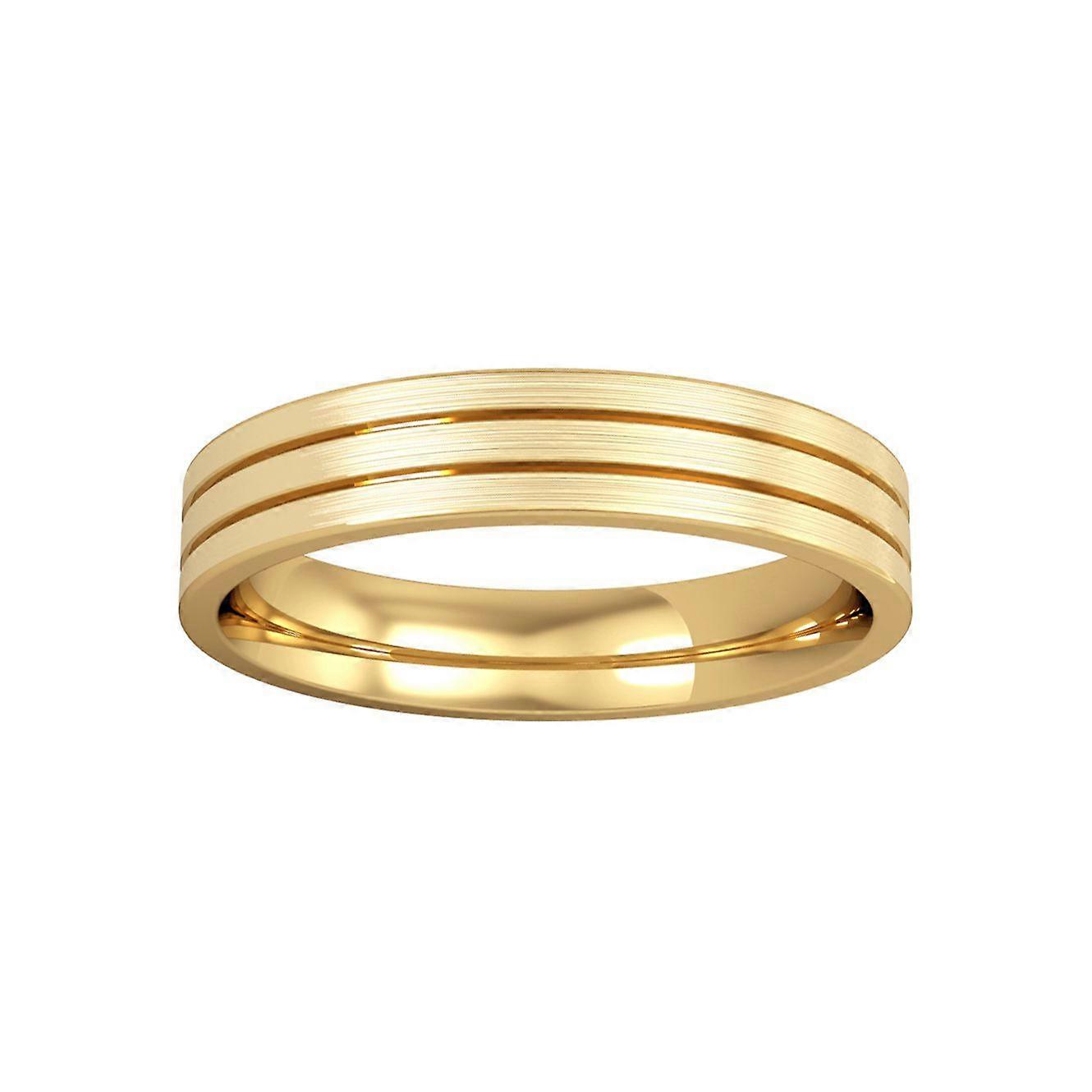 Jewelco London 18ct Yellow Gold - 4mm Flat-Court Striped with Satin Wedding Ring