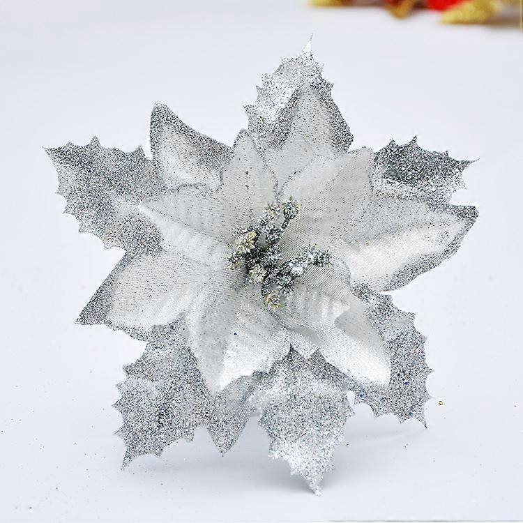 Gold, silver and red Christmas flowers Christmas cuttings artificial flowers Christmas tree wreath rattan decoration accessories silver