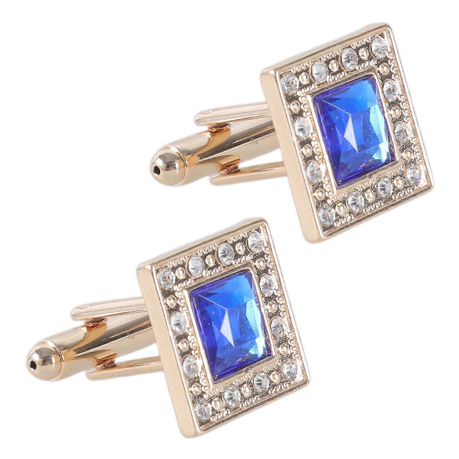 Gold +Blue Crystal Square Men's Cufflinks Cuff Links Men's Wedding Cufflinks
