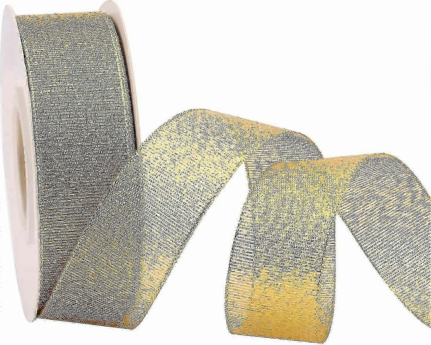 1 Inch Gold Halloween Ribbon. Sparkly Heilwiy Christmas Gold Ribbon For Gift Wrapping. Fabric Curling Ribbon