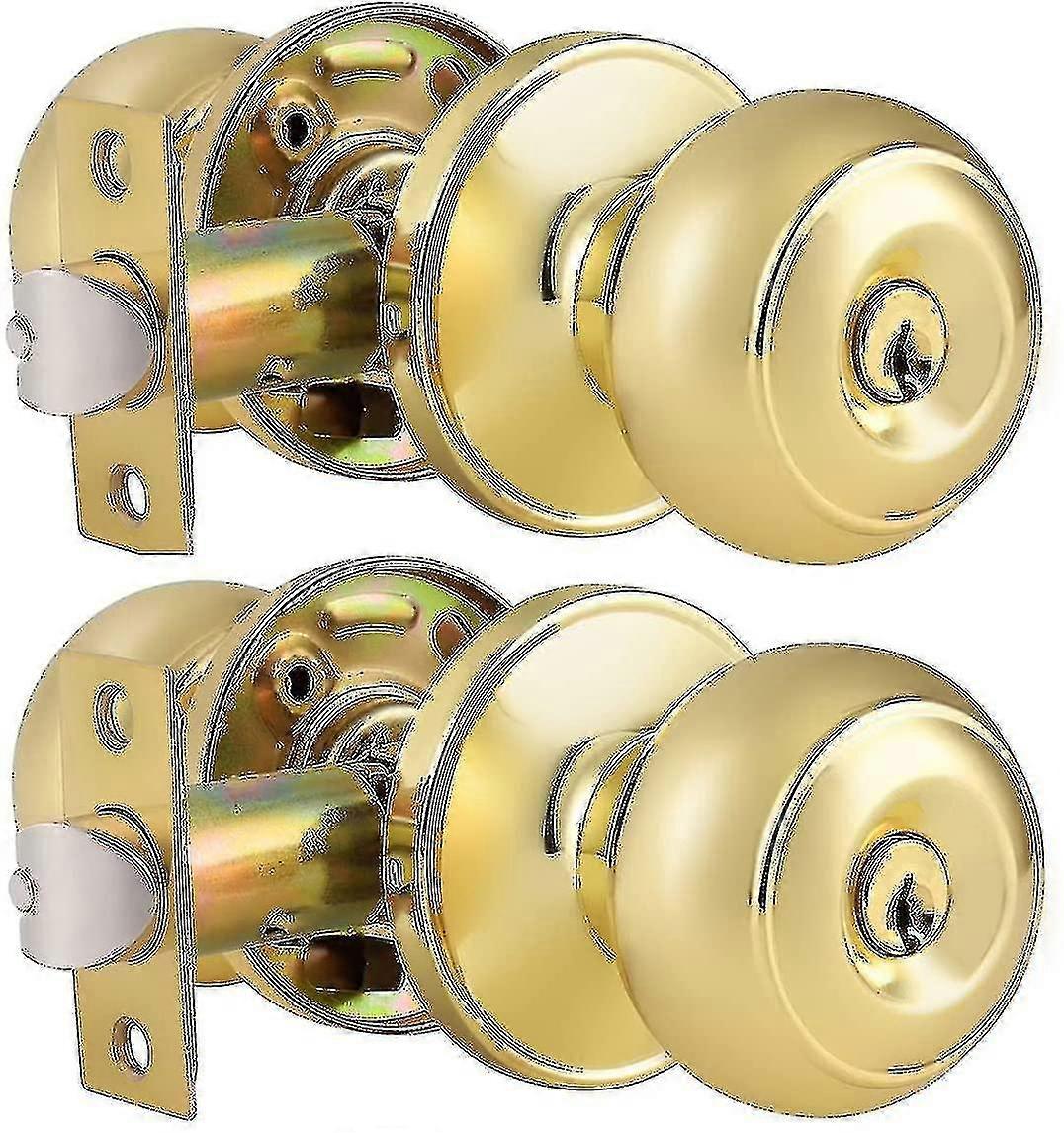 Gold Round Door Knob Lock for Entrance - Interior Brass Door Handle & Key Lock for Front Door Security