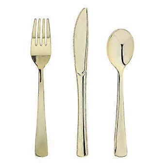 Golden Plastic Cutlery Set, Disposable Dinnerware for Parties