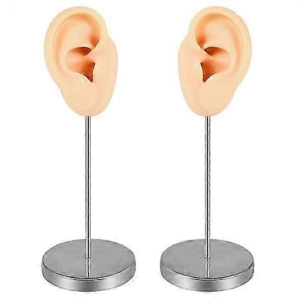(Skin Color) Professional Silicone Left Right Ear Model for Cosmetic Training Realistic Human Ear Mannequin Jewelry Display Props skin color
