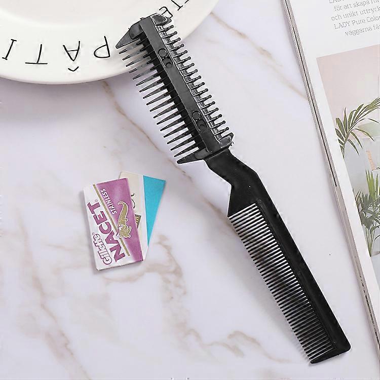 Reliable Material: This hair cutting comb is made of ABS and stainless steel, featuring a double-edged design for safe and precise hair trimming. The other end is a plastic comb with fine teeth, perfect for styling and touch-ups, saving you time and providing a beautiful hairstyle. Hair Comb Size: The razor comb measures approximately 20 cm/7.87 inches in length, 3.3 cm/1.30 inches in width, and 0.9 cm/0.35 inches in thickness. It's lightweight at about 0.015 kg, making it easy to carry anywhere. Easy to Use: The comb surface has 2 opening directions, allowing you to easily replace the inner blades for convenient and hassle-free use. Widely Applied: This double-sided hair razor is suitable for most people to cut and style their hair at home. It's a great DIY tool, allowing you to enjoy the fun of cutting your hair without asking for help. Also convenient for hair salons and barbershops. Function: Our hair cutting comb is a useful tool for shortening, styling, and thinning hair with ease. The humanized design protects your fingers from scratches.