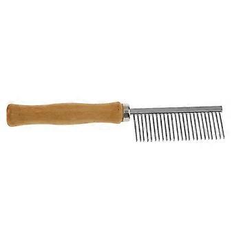 Pet Hair Flea Comb Stainless Steel Pin Dog Grooming Brush Wooden Grip Handle