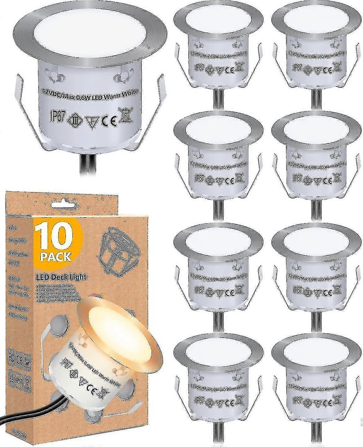 Recessed Led Deck Light Kit (10-Pack), 12v Low Voltage Landscape Lighting, IP67 Waterproof Outdoor S20240603