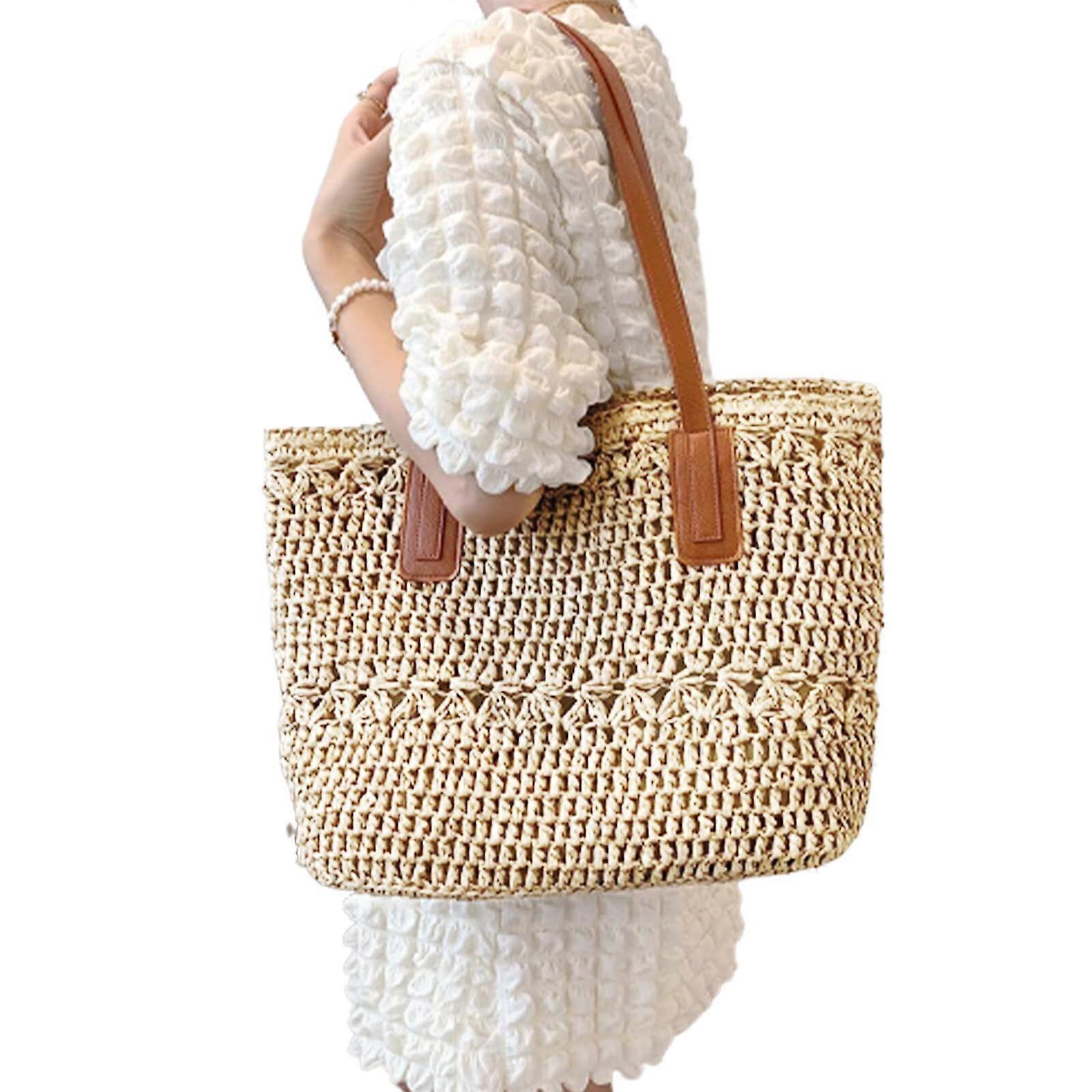 Straw Beach Bag for Women Summer Holidays, beige