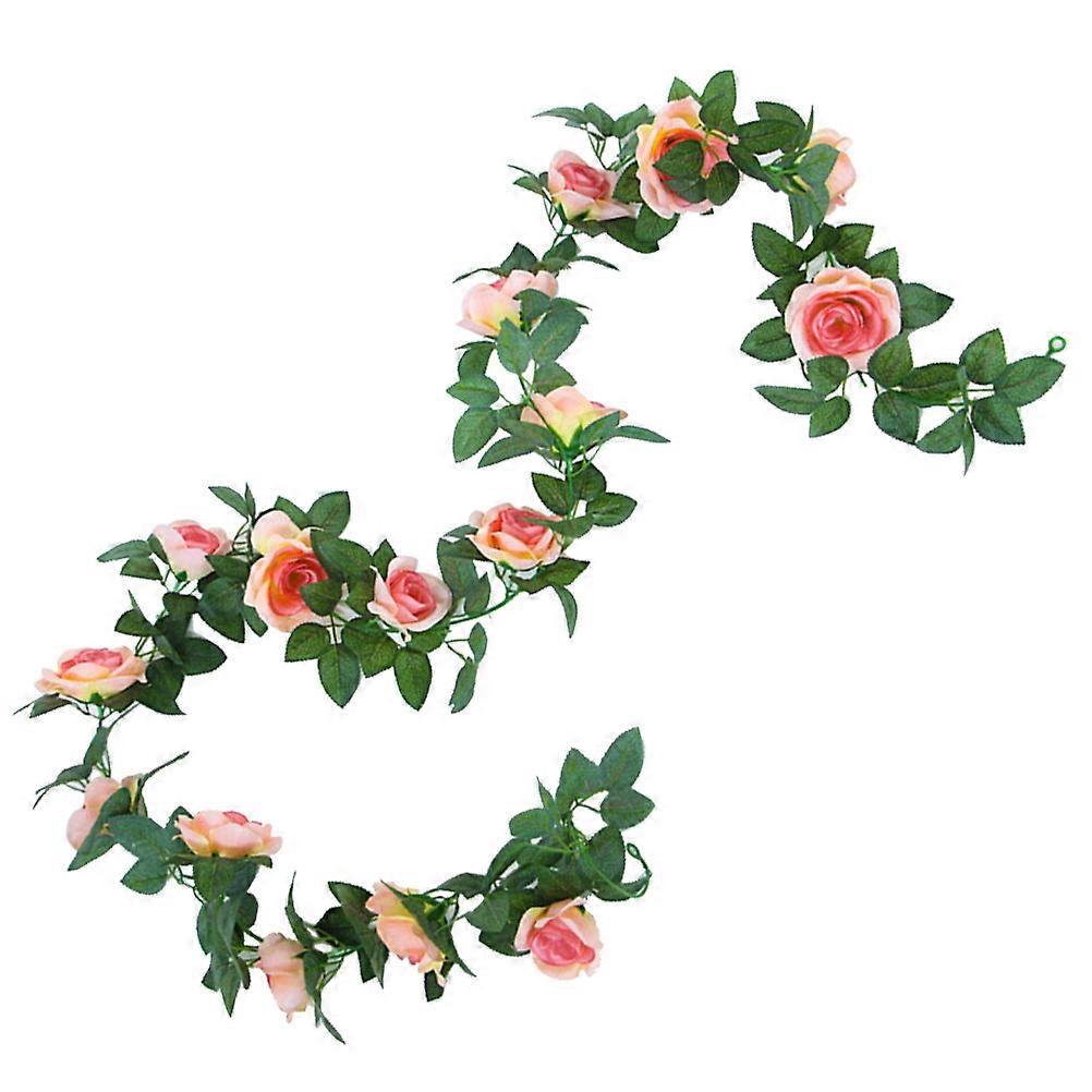 Fake Rose Vine Floral Garland Artificial Flowers For Hotel Wedding Home Party Garden Decor (Dark Pink)