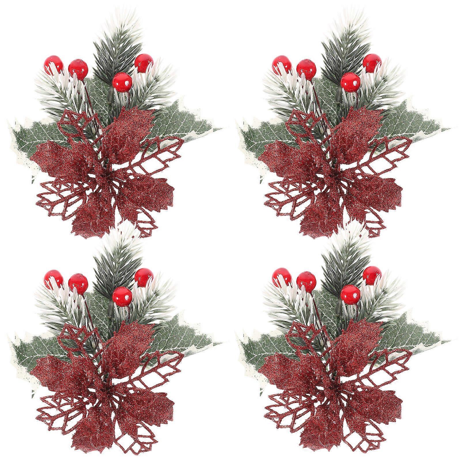 Fake Christmas Flowers Red Poinsettia Flower Decoration 20Pcs Pack