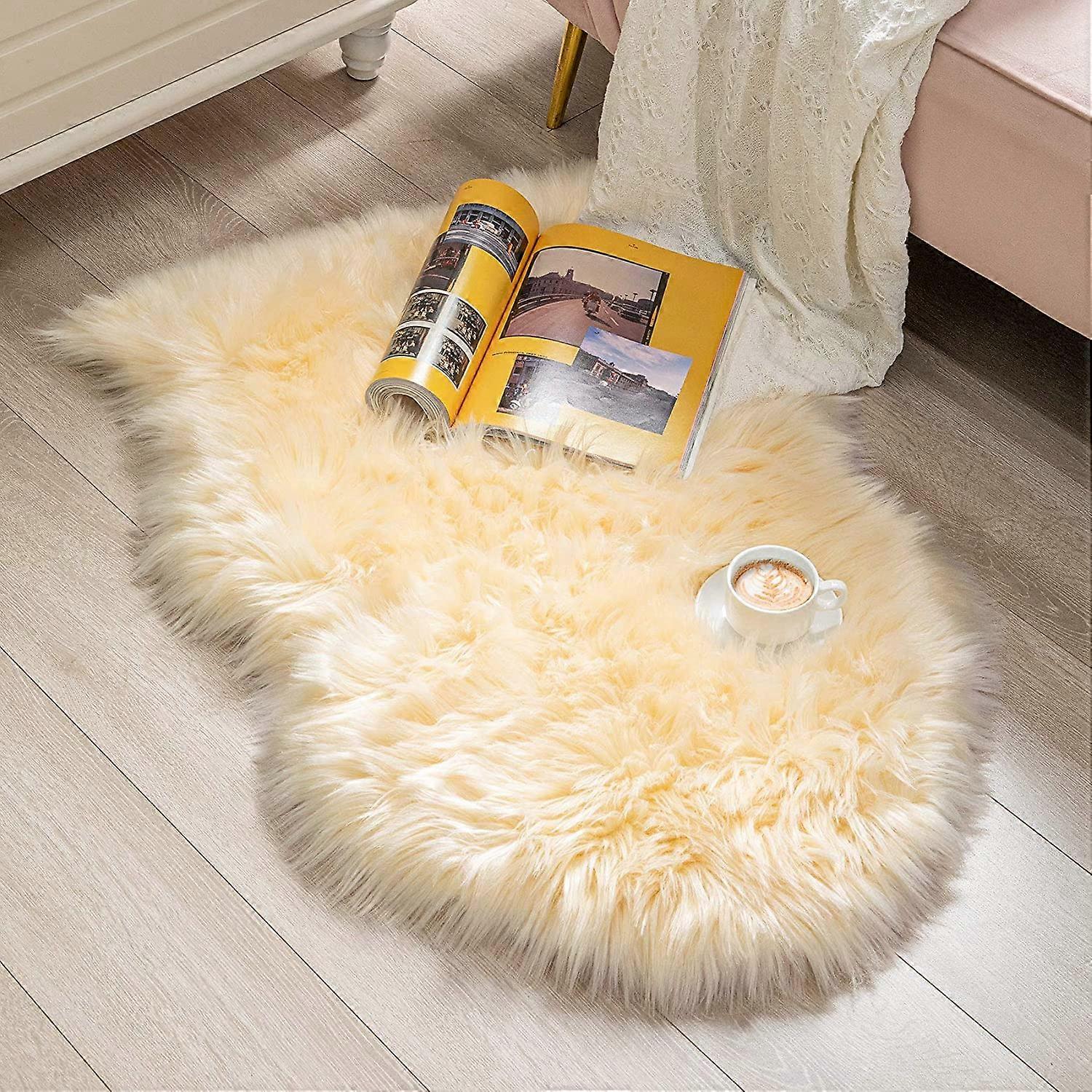 Faux Sheepskin Fur Area Rug, Luxury Fluffy Area Rug, Soft Furry Carpet Rug for Bedroom
