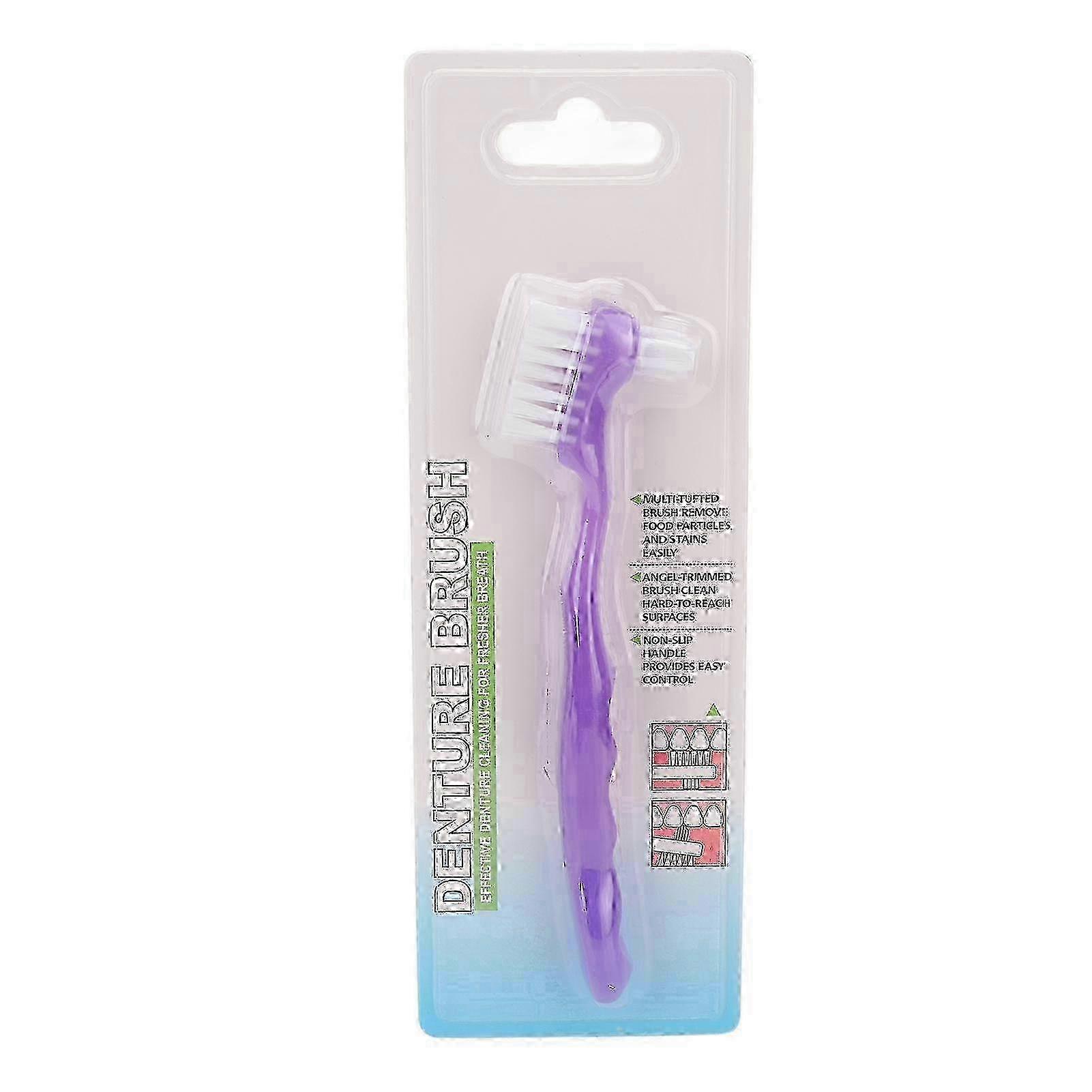False Teeth Cleaning Brush Elderly Portable Plaque Dirt Removal Denture Brush Gift for Home Travel Purple