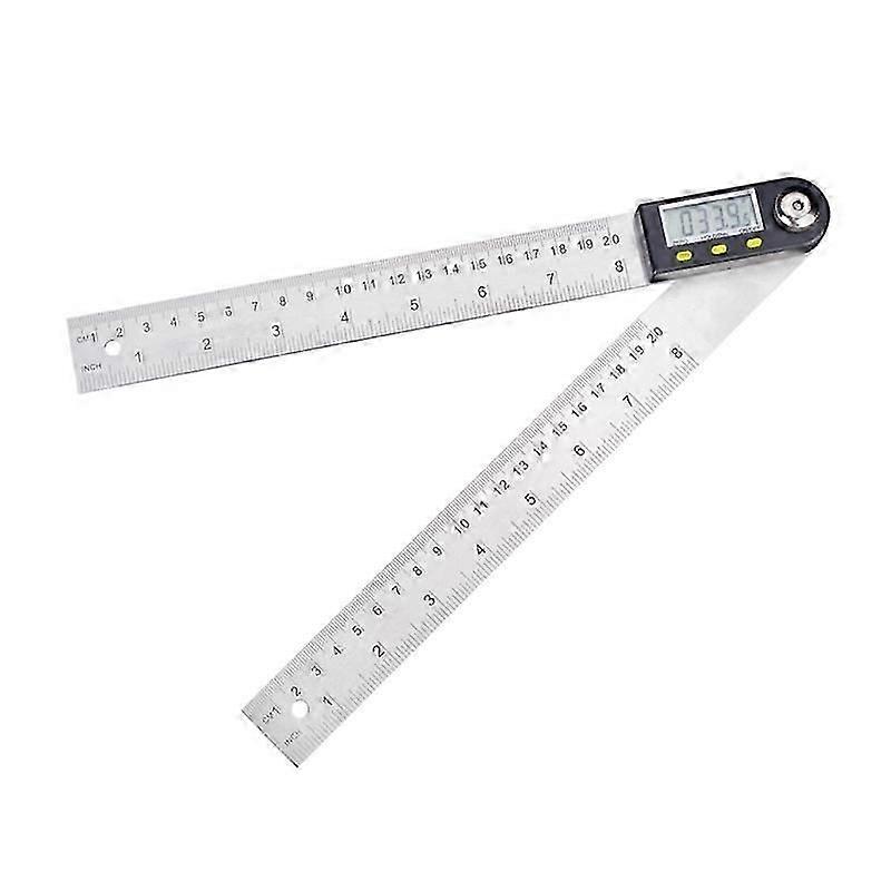 Multi-Functional Measurement Combined with stainless steel ruler and angle sensor, measuring angle and length. Ideal for measuring inside and outside of angle Easy & Accurate to Measure Digital LCD display for easy reading. Accuracy0.3; resolution 0.05; measuring range: 0-300mm(12inch)/ 0-360 Data Hold Function Reset button for zeroing at any angle for relative measuring. Hold button for holding the angles any times which do not worry about data deviation Auto OFF Come with a 3V CR2032 battery. It will shut down after 6 minutes of inactivity automatically Stainless Steel Ruler The knob is stainless steel material which is better than plastic texture. Battery Included