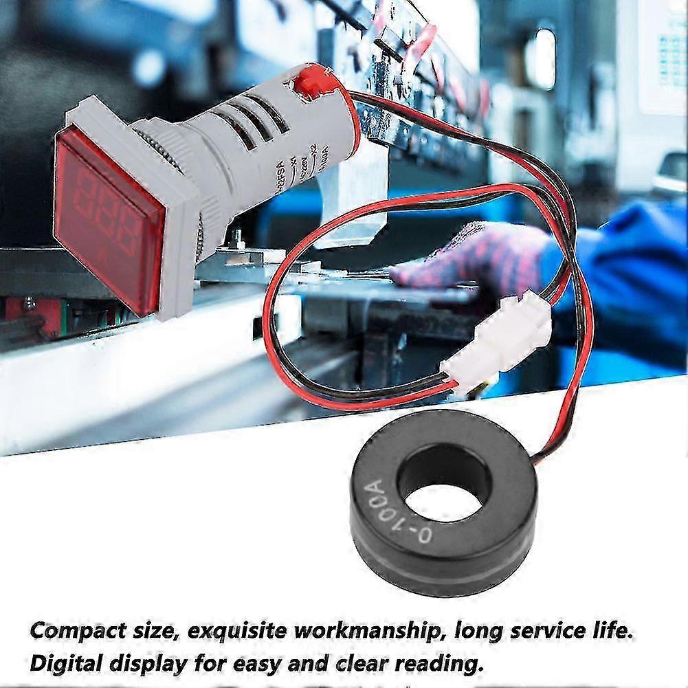0-100A Digital Ammeter AC Current Meter Indicator LED Square Lamp Light Signal (Red) 25-26