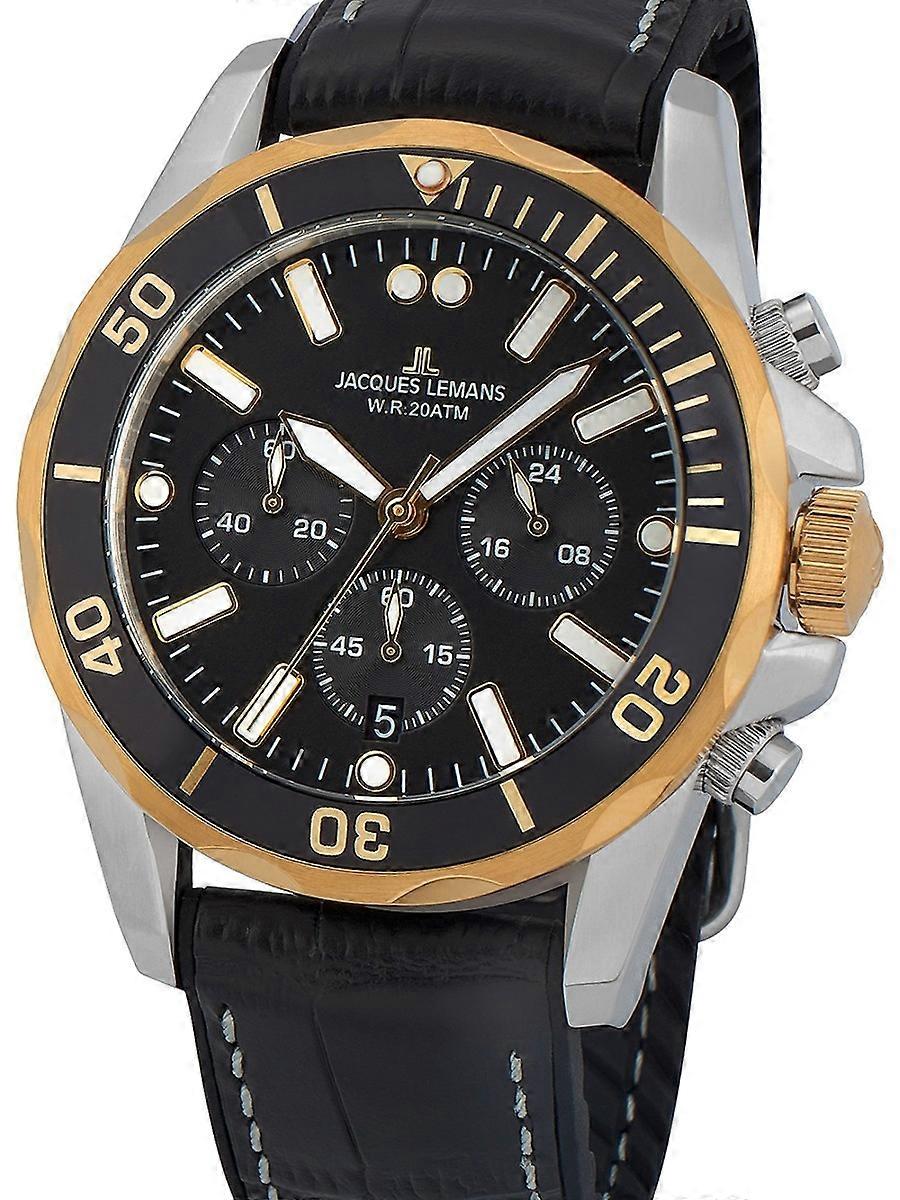Jacques Lemans Svart Äkta Läder Eller Läderimitation Liverpool Chronograph 1-2091D Herrklocka