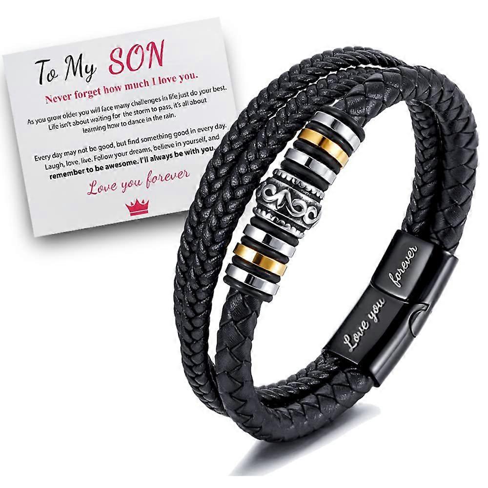 To My Son-" I love you forever" Braided Leather Bracelet For Men, Stainless Steel Wristband, Mens Braided Leather