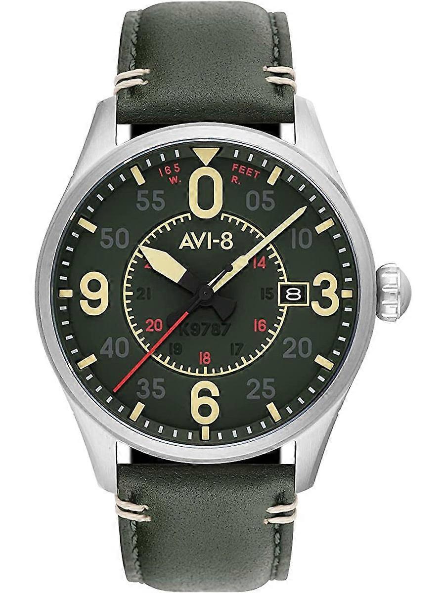 AVI-8 Grön Äkta Läder Eller Läderimitation Spitfire Automatic AV-4090-03 Herrklocka