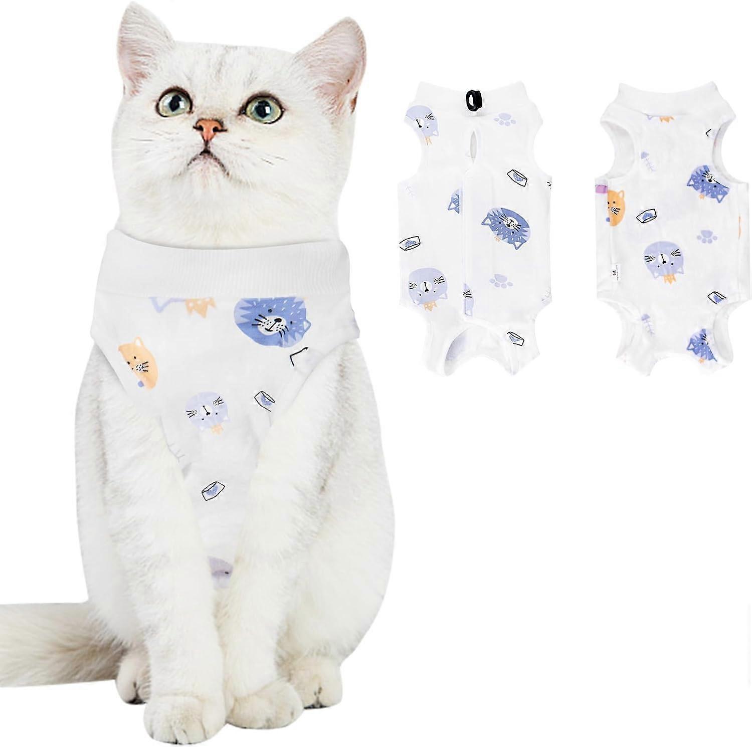 Breathable and ComfortableOur cat recovery suit female is made of high stretch breathable fabric with elastic collar. Soft and safe fabric protects your cat from secondary damage after surgical trauma. The surgery recovery suit for cats makes it comfortable for kittens to wear, helps the wound heal safely, and protects the abdomen and skin of the cat well.E-Collar Alternative & Anti Licking The recovery suit for cats is the ideal alternative to cones and E-collars, allowing your cat to do anything without feeling blocked. It protects your cat's wounds on a larger scale, prevents cats from licking or scratching their wounds, and promotes wound recovery. Using a recovery suit for spay will keep your cat calm and relieve stress. Easy to WearWith a long Velcro strap in the back of the recovery shirt, this cat recovery suit for spay features high elasticity and no sleeves for easy on and off, while allowing your cat a larger range of motion. The design of this cat surgical recovery suit is a better fit for cats, reduces the risk of escape or displacement, and can be easily adjusted to fit your cat's size and comfort. Adjustable Neckline & U ShapedOur cat recovery suit after surgery features an adjustable neck elastic band, providing a secure and customized fit for your furry friend. Having a U-shaped design on the buttocks, this recovery pajama suit makes it easier for cats to use litter basin without taking off the cat surgery suit. Protects floor from stains, beds, and rugs from getting spoilt.