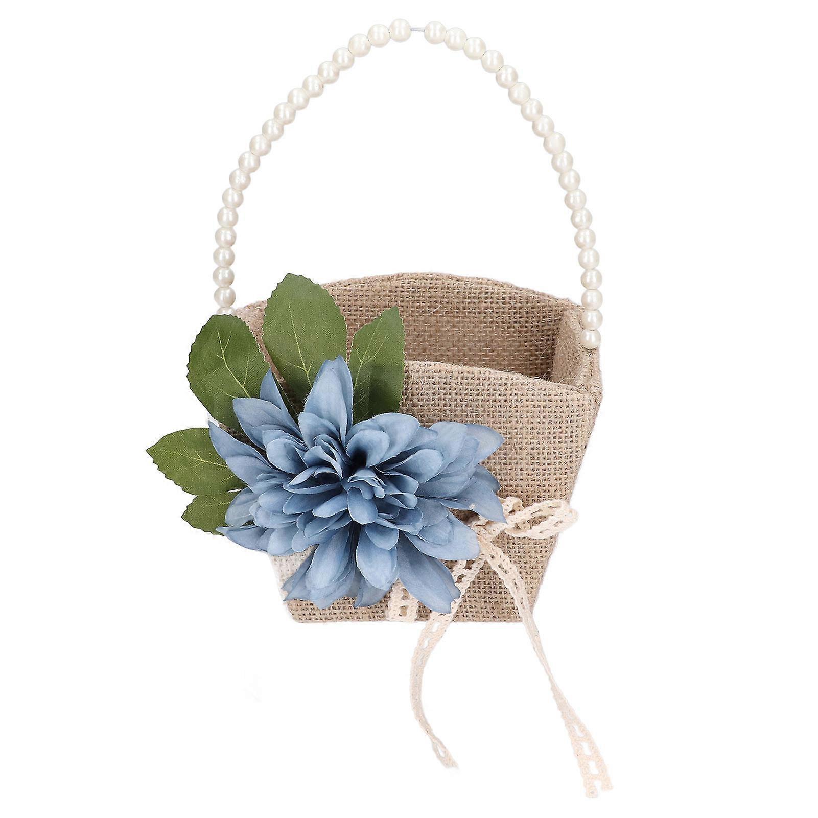 Retro Linen Flower Girl Basket with Pearl Handle for Weddings - Light Weight Portable