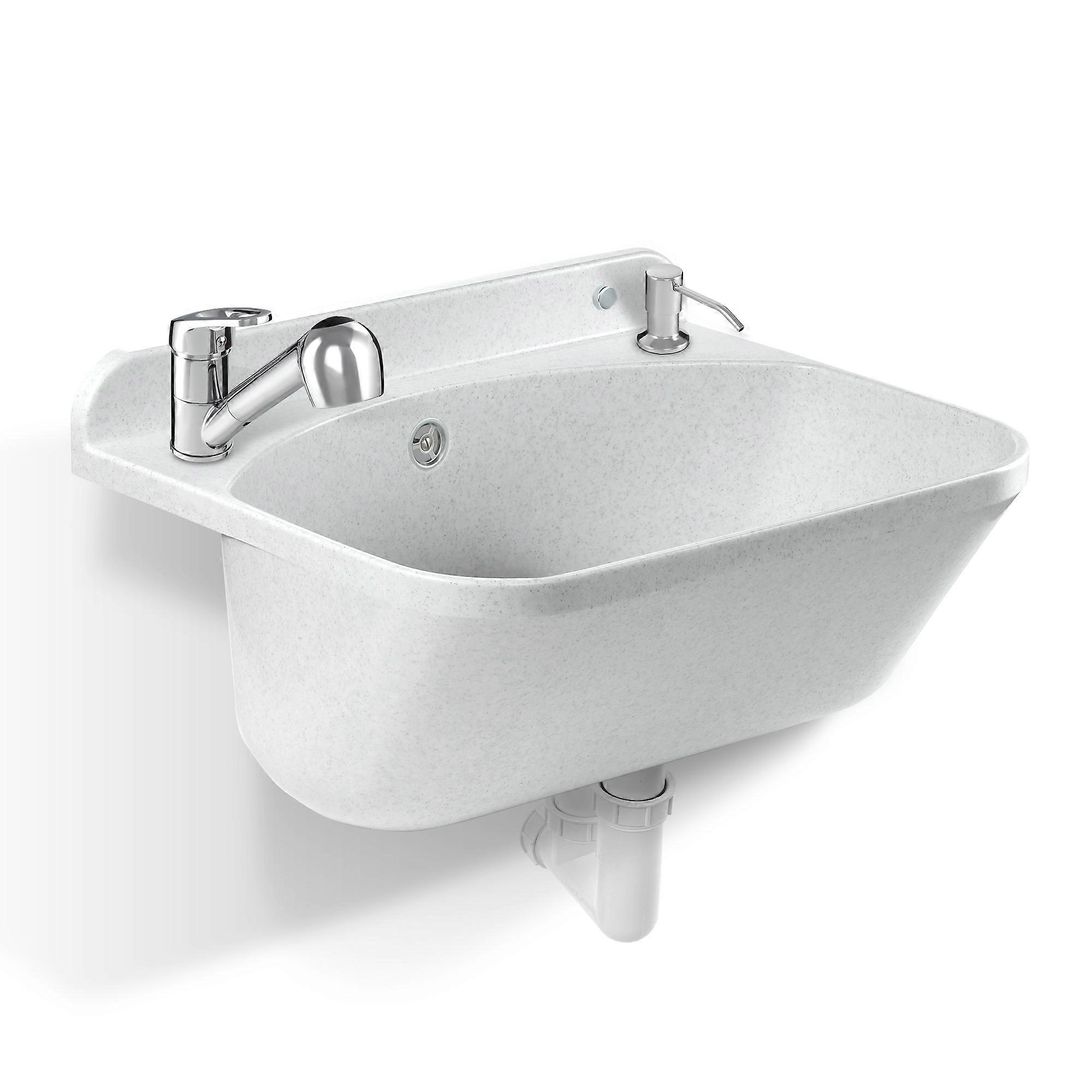 Zlew gospodarczy z wyciąganą baterią i dozownikiem Gospo Eko, biały