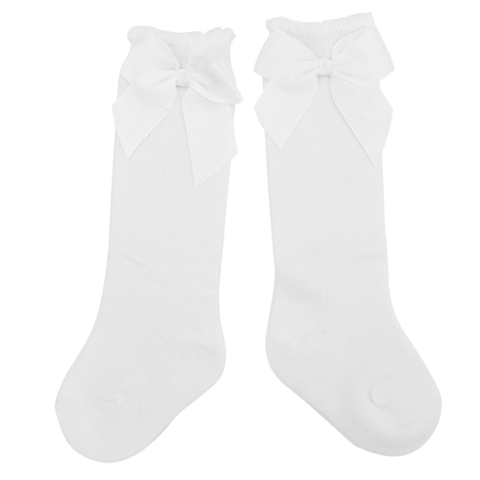 Girls Infant Skin Friendly Knee High Socks Infant Soft Stylish Lovely Long Socks with Bow(White )