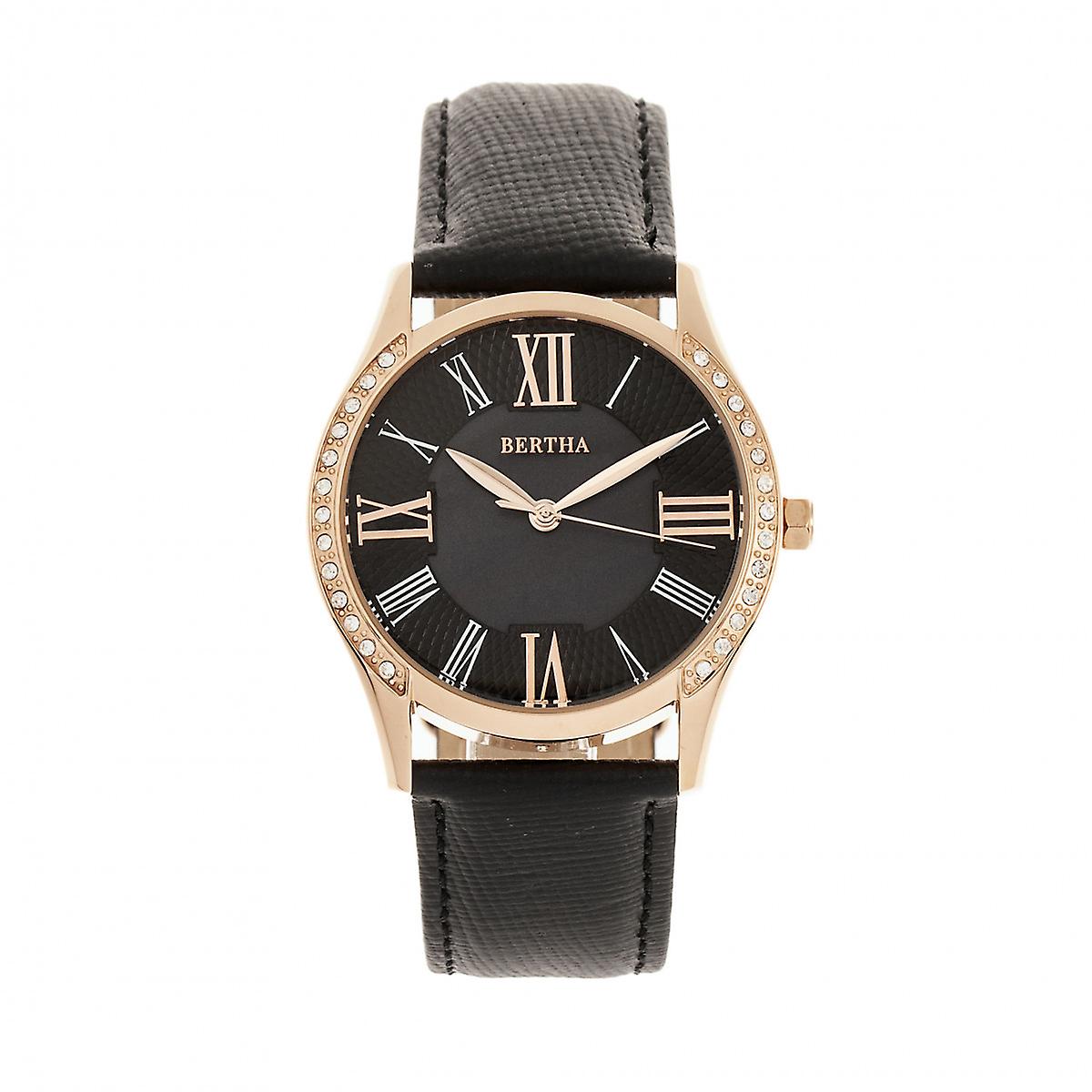 Bertha Sadie Mother-of-Pearl Leather-Band Watch - Black