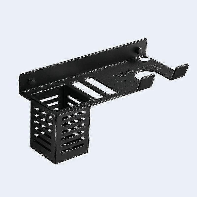 Wall Mount Hair Dryer & Straightener Holder with Socket & Storage, No Drilling Needed
