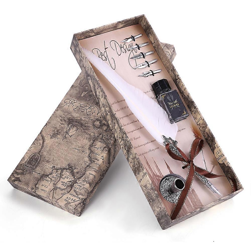 Classical Retro Fountain Pen Feather Dip Pen Writing Pen Gift Box for Christmas Valentine White